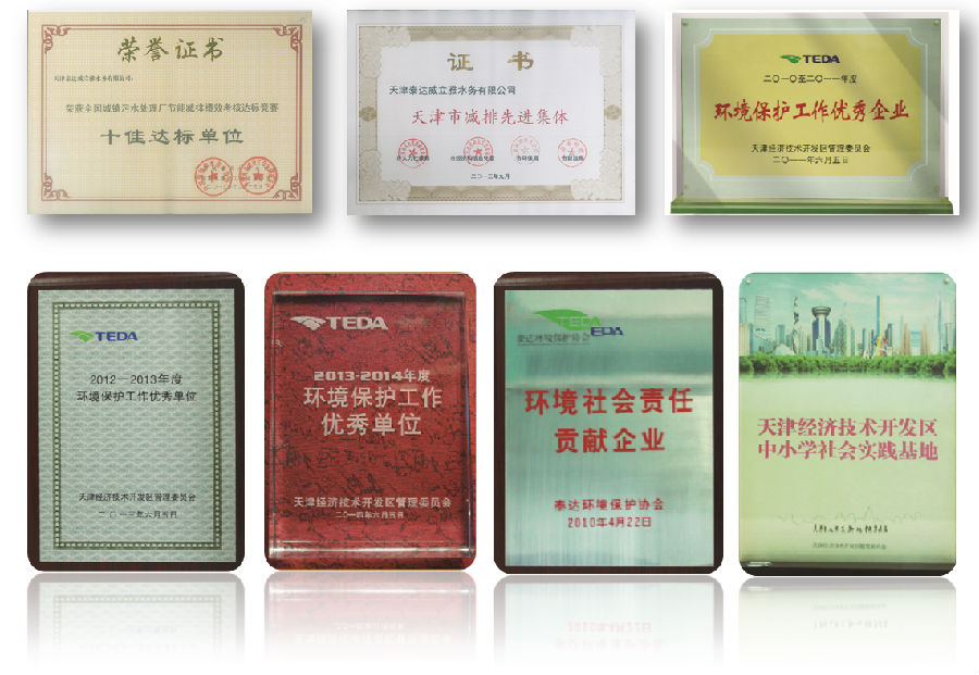 公司自成立以來(lái),蒞年榮獲由中國(guó)城鎮(zhèn)供水排水協(xié)會(huì)、泰達(dá)環(huán)境保護(hù)協(xié)會(huì)、開(kāi)發(fā)區(qū)管委會(huì)、泰達(dá)控股有限公司等機(jī)構(gòu)頒發(fā)的各類(lèi)先進(jìn)榮譽(yù)共20余項(xiàng),得到了天津市和開(kāi)發(fā)區(qū)環(huán)保局、開(kāi)發(fā)區(qū)管委會(huì)及合作股東的認(rèn)可。